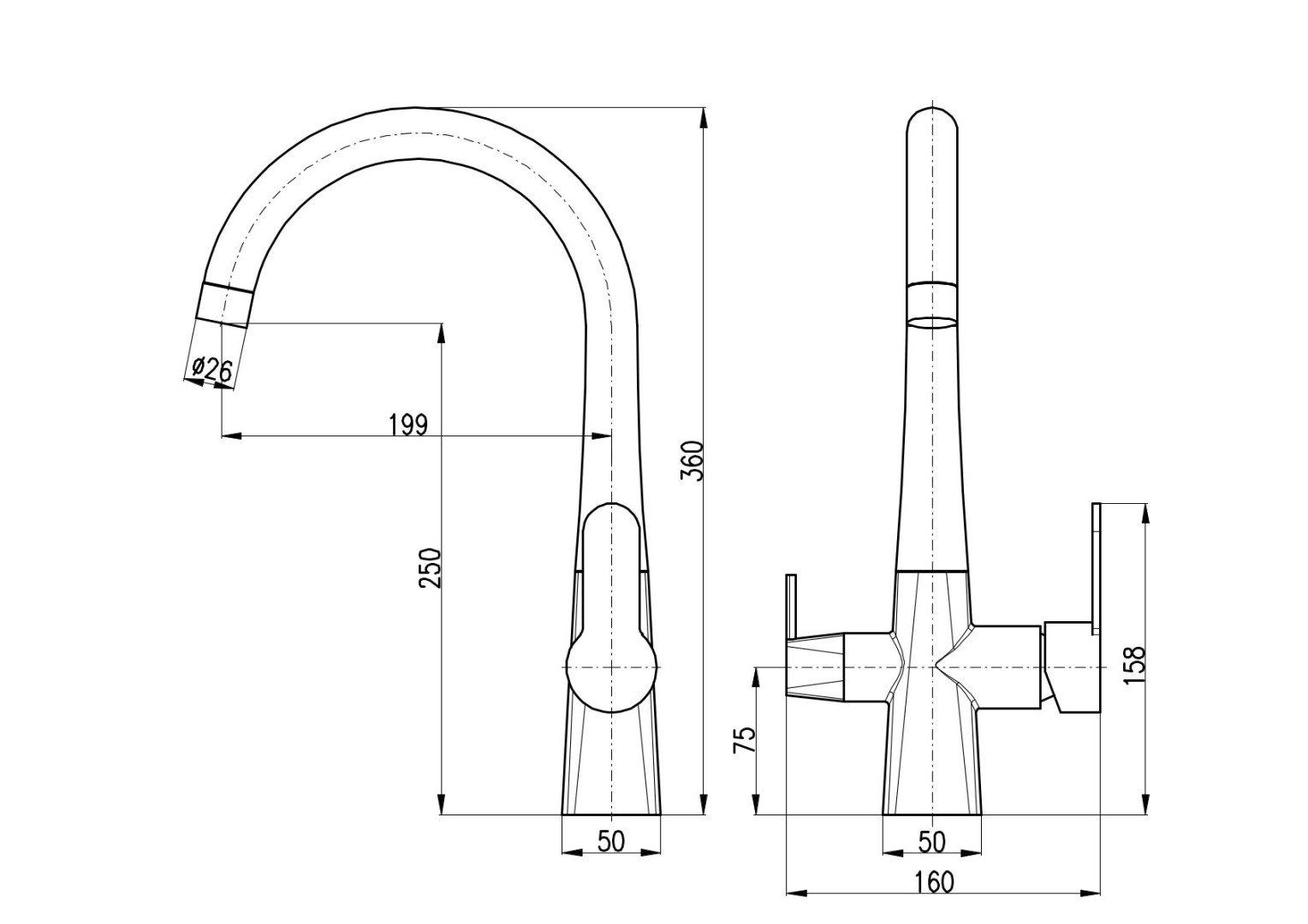Vodovdní baterie dřezová stojánková s otočným ústím - pro dvě vody - pitnou a užitkovou.