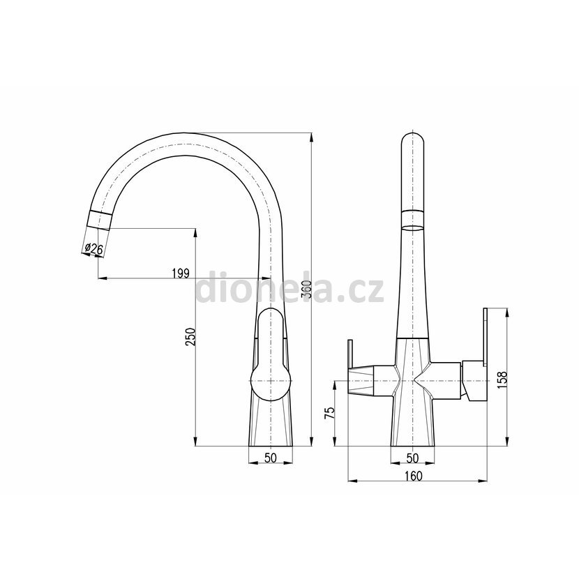 Vodovdní baterie dřezová stojánková s otočným ústím - pro dvě vody - pitnou a užitkovou.