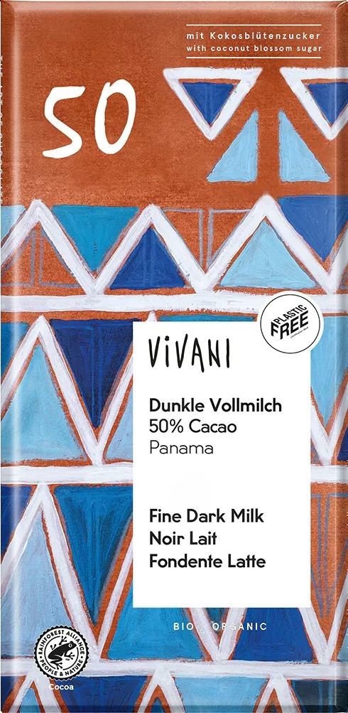 Bio mléčná čokoláda 50% s kokosovým cukrem VIVANI 80 g
