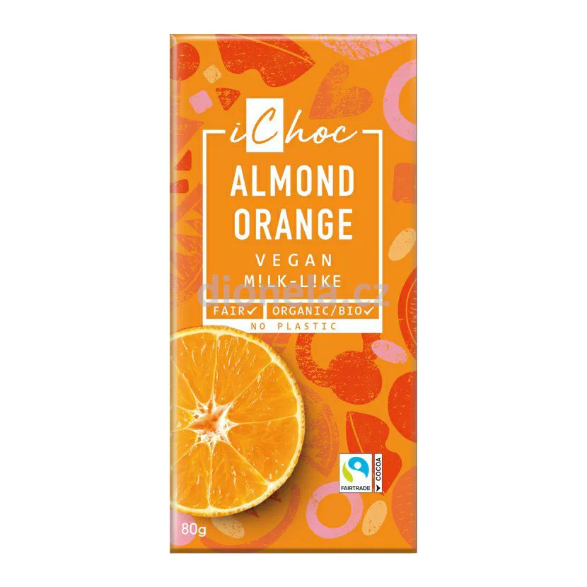 Bio vegan čokoláda mandle pomeranč iChoc 80 g