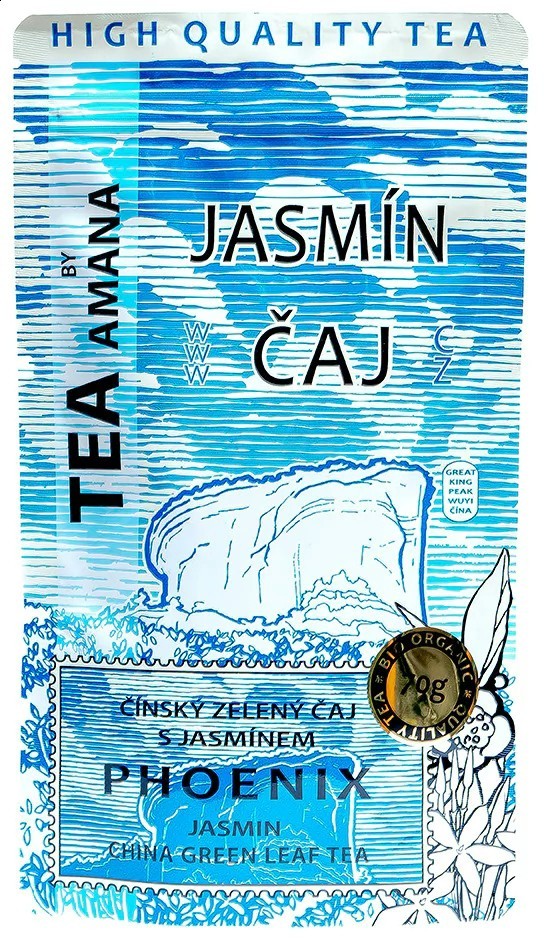 Jasmínový čaj je jeden z nejznámějších aromatizovaných zelených čajů. Jasmin Phoenix pochází z provincie Fujian. Má kvalitní list s mnoha tipsy a ovoněný je jasmínovými kvítky. Nálev je harmonický, květově zelený a má charakteristickou jasmínově sladkou chuť. Příprava: Do vyhřáté konvice o objemu 0,5 litru (či do filtru) nasypeme 6-8 gramů čaje, necháme (za mírného protřepání) lístky krátce nabrat horkost a vlhkost z konvice a poté zalijeme zchladlou vodou (80-90 °C). Po 1-2 minutách luhování přelijeme nálev přes čajové sítko nebo filtr do připravené konvice o stejném objemu, popřípadě vyjmeme filtr s čajem. Pro rovnoměrnější přípravu nálevu můžeme v průběhu luhování odlít část do připraveného šálku a nalít zpět z vrchu do konvice.