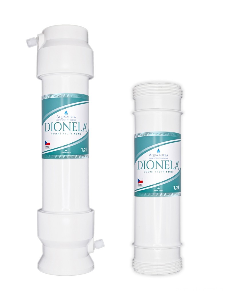 DIONELA je unikátní výrobek, "šitý na míru" kvality českých a slovenských pitných vod. Mimořádně velký objem sorpčních hmot filtru je jedním z důvodů jeho mimořádně vysoké účinnosti.
