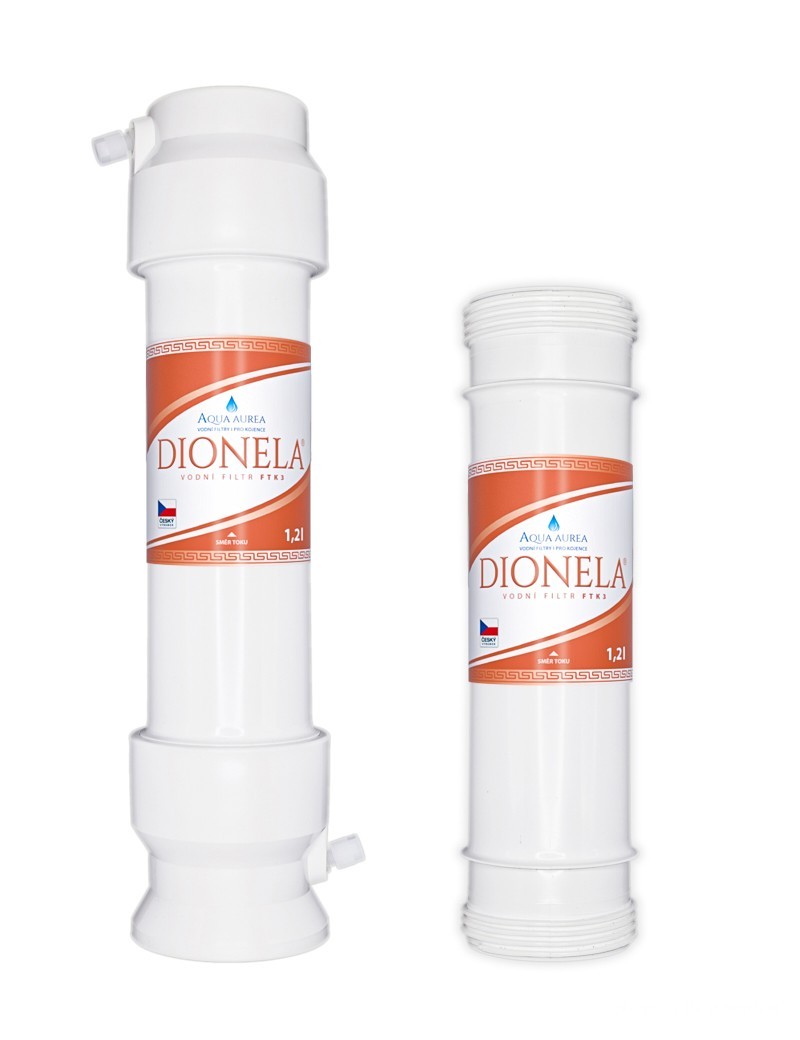 DIONELA je vodní filtr tzv. 3. kohoutku. Připojuje se k vodovodnímu kohoutku nebo k roháčku pod kuchyňskou linkou. Slouží k odstraňování širokého spektra cizorodých látek z pitné vody, určené pro přípravu nápojů a pokrmů.