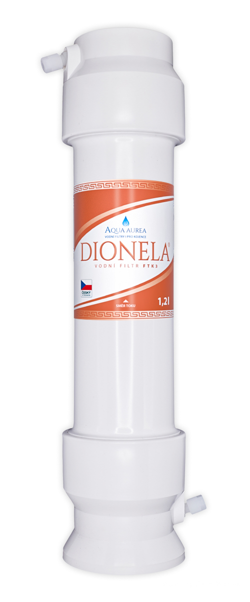 DIONELA je vodní filtr tzv. 3. kohoutku. Připojuje se k vodovodnímu kohoutku nebo k roháčku pod kuchyňskou linkou. Slouží k odstraňování širokého spektra cizorodých látek z pitné vody, určené pro přípravu nápojů a pokrmů.