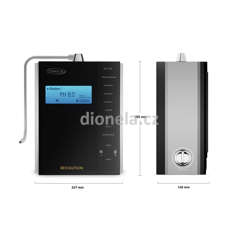 Průtokový Ionizátor přirozenou cestou vyrábí vodu s pH od 1,8 do 12,1. - má tedy široké využití v domácnosti, v péči o květiny, ale hlavně pro naše zdraví. Lze jím ještě vylepšit filtrovanou vodu např. z Dionely.