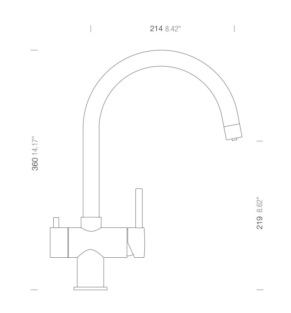 Stojánková dřezová baterie s možností připojení na užitkovou i filtrovanou vodu - má dvě páčky a kombinovaný perlátor, provedení Puro (nástřik), výška 360 mm, pro otvor 35 mm, otočná o 360 °
