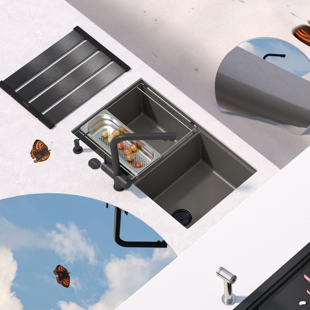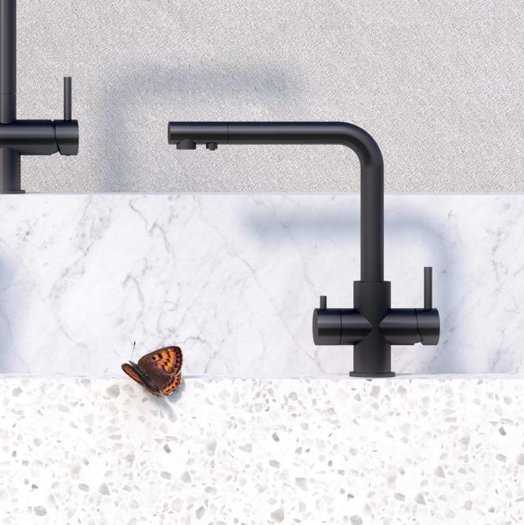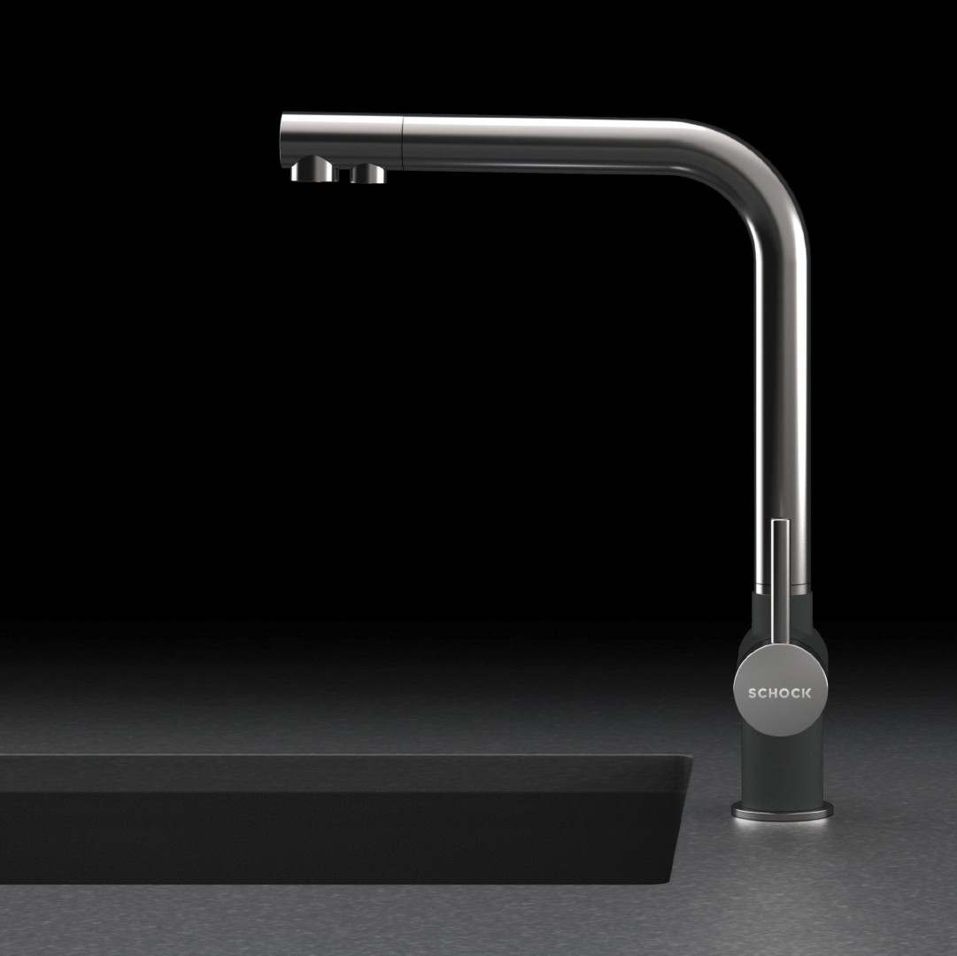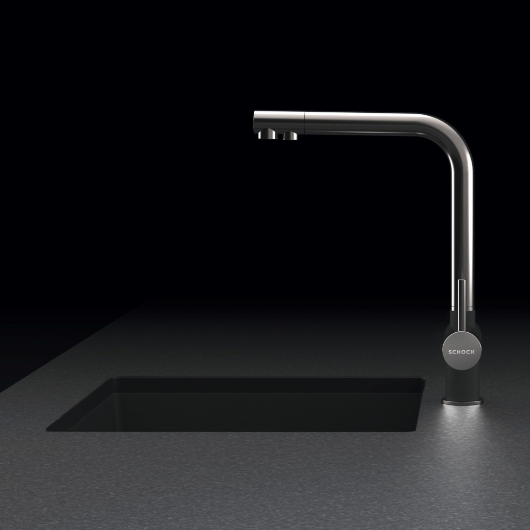 Kuchyňská baterie Schock Vitus Puro - trojcestná baterie lomená, černá, matná.