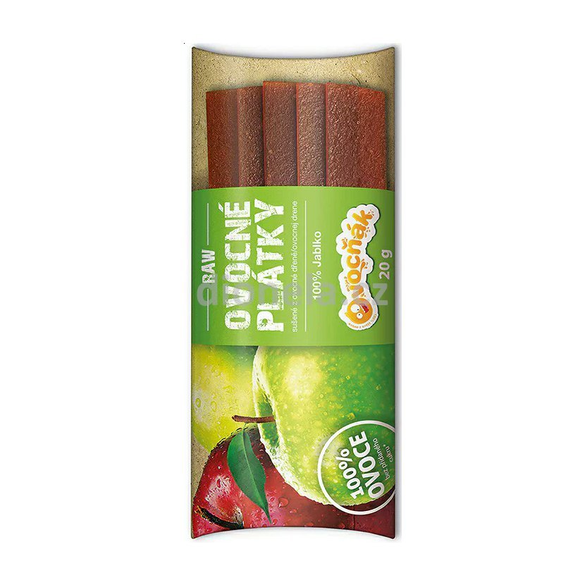 Tyto jablečné plátky obsahují pouze 100 % českých jablek bez přidaného cukru. Ovoce se při jejich zpracování nejprve nadrtí a poté usuší při nízké teplotě, aby nedocházelo ke ztrátě živin. Během sušení přijde ovoce o všechnu vodu, ale jeho chuť se tím zvýrazní. Do ovocných plátků nejsou přidávány žádné konzervanty, barviva či dochucovadla. Plátky poslouží jako skvělá zdravá svačinka jak pro děti, tak pro dospělé.