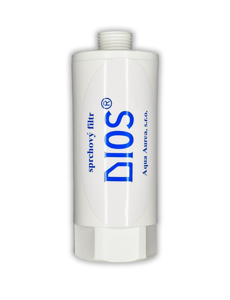 Sprchový filtr Dios se vyznačuje 3-stupňovou filtrací: mechanické nečistoty zachycují textilní přepážky, další filtrační hmoty (granule slitiny kovů, keramické kuličky) jsou zaměřeny na odstranění chloru, bakterií a tvrdosti a vzájemně se vhodně doplňují. Aktivní uhlí ve sprchovém filtru zásadně nepoužíváme, protože na rozdíl od studené vody se při použití aktivního uhlí pro teplou vodu do vody uvolňují nežádoucí škodliviny. Nově obsahuje sprchový filtr DIOS nejen granule slitiny kovů, ale také keramické dechlorační kuličky s podstatně vyšší účinností. Jsou vyrobeny z vysoce kvalitního siřičitanu vápenatého, snižují povrchové napětí vody, odstraní nepříjemnou chuť, zápach a přeměňují okamžitě chlor na neškodnou sůl. Účinnost je více než 95 %.To umožňuje mimo jiné i zefektivnění pěnění mýdla a šamponů.