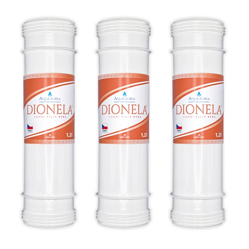Regenerace se provádí výměnným způsobem (kus/kus). Odšroubujte horní a spodní hlavice a vypotřebované filtrační vložky zašlete nebo přineste do naší prodejny na adrese: AQUA AUREA, s.r.o., Horňátecká 1772/19, 182 00 Praha 8. Výměna vypotřebovaných filtračních vložek. Dionela F3TRIO je koncipována jako celek, proto není povoleno použití jednotlivých filtračních vložek jako samostatného filtru! Regenerujte vždy všechny tři filtrační vložky zároveň! Obdržíte za ně filtrační vložky regenerované, které mají stejné schopnosti jako vložky nové, ale zaplatíte za ně pouhý zlomek ceny vložek nových. Těsnění do hlavic Dionely, není součástí balení regenerace, těsnění doporučujeme měnit při každé regeneraci filtru.
