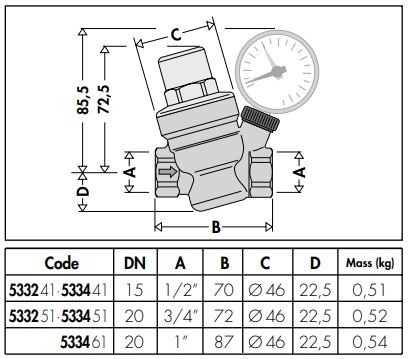 Redukční tlakový ventil šikmý 1/2" Caleffi