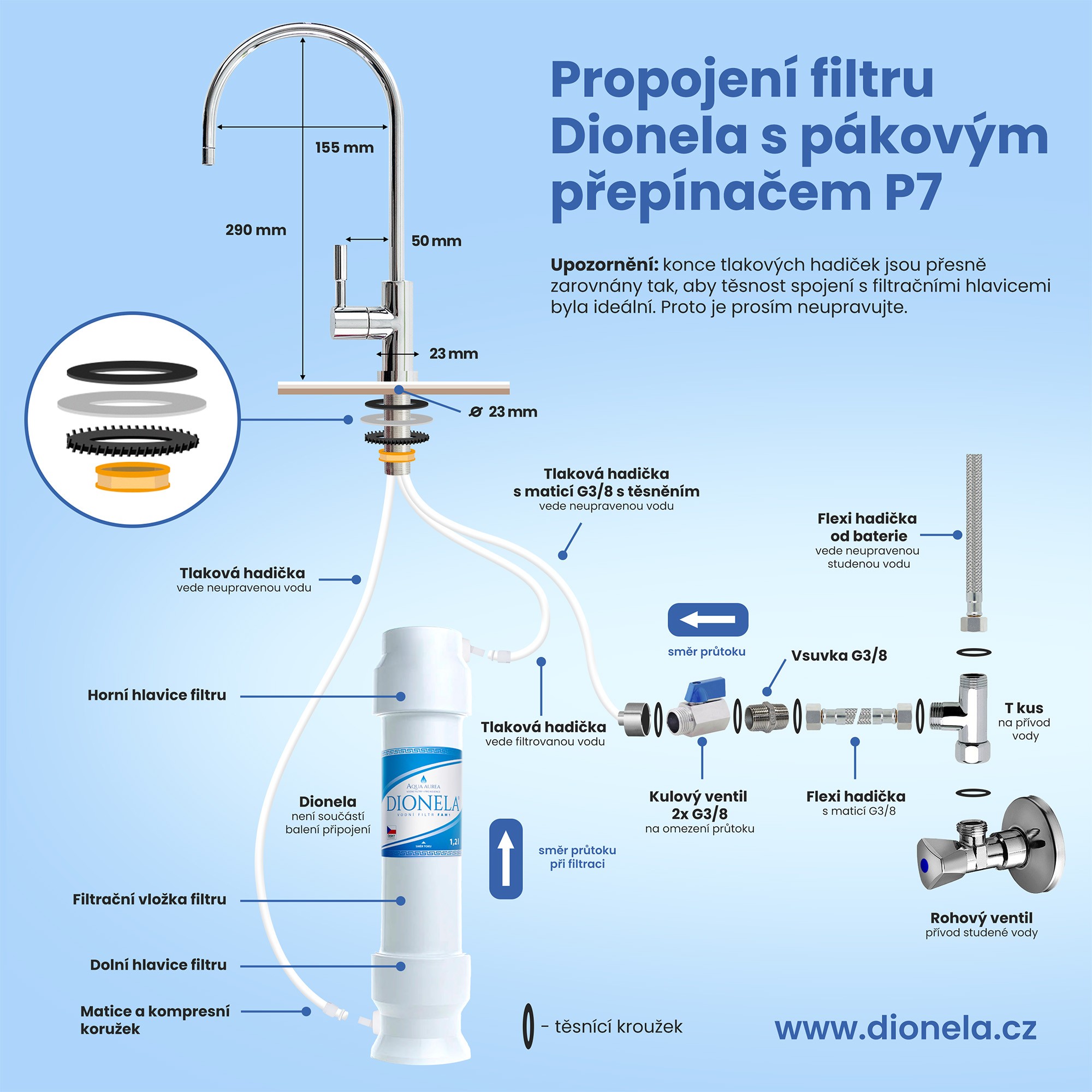 připojení filtru pomocí přepínače P7ak lesk (vč. hadiček a propojovacích fitinek, návod na propojení)