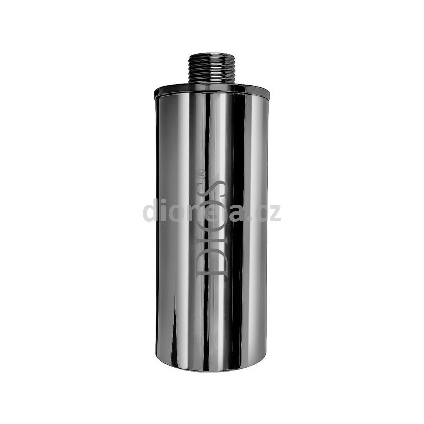 Sprchový filtr Dios se vyznačuje 3-stupňovou filtrací: mechanické nečistoty zachycují textilní přepážky, další filtrační hmoty (granule slitiny kovů, keramické kuličky) jsou zaměřeny na odstranění chloru, bakterií a tvrdosti a vzájemně se vhodně doplňují. Aktivní uhlí ve sprchovém filtru zásadně nepoužíváme, protože na rozdíl od studené vody se při použití aktivního uhlí pro teplou vodu do vody uvolňují nežádoucí škodliviny. Nově obsahuje sprchový filtr DIOS nejen granule slitiny kovů, ale také keramické dechlorační kuličky s podstatně vyšší účinností. Jsou vyrobeny z vysoce kvalitního siřičitanu vápenatého, snižují povrchové napětí vody, odstraní nepříjemnou chuť, zápach a přeměňují okamžitě chlor na neškodnou sůl. Účinnost je více než 95 %.To umožňuje mimo jiné i zefektivnění pěnění mýdla a šamponů.